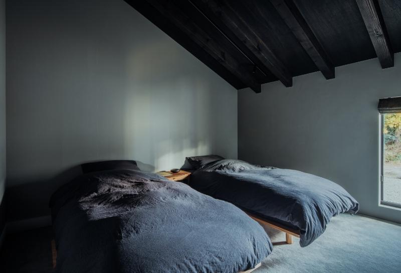 あえて梁を見せることで空間にゆとりと表情を生み、休息を妨げない設計が、静かな安らぎを支えます。
